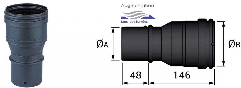 Augmentation sans collier de serrage pour conduit évacuation fumées simple paroi noir Série VT310.