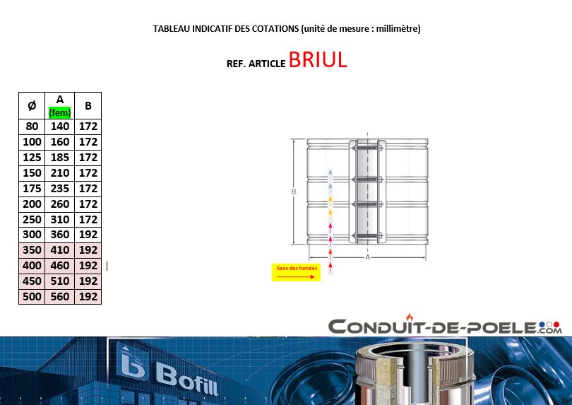 Pour un bon maintien au vent du conduit extérieur, il faudra prévoir à chaque jonction entre les tuyaux, ces brides d'union médiane (brides larges)