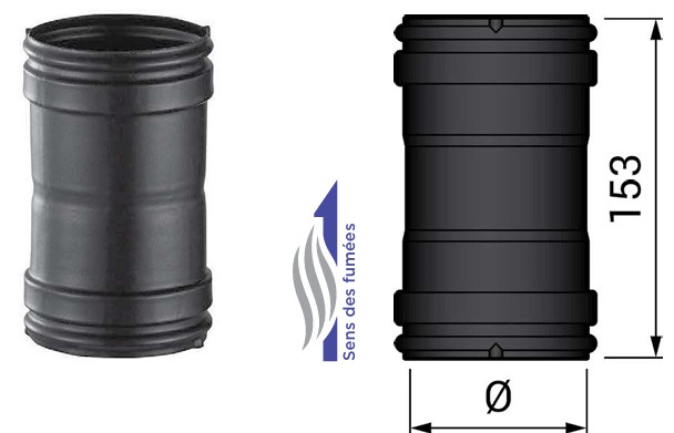 Manchon femelle sans collier de serrage pour conduit évacuation fumées simple paroi noir Série VT310.