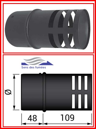 Chapeau horizontal sans collier de serrage pour conduit évacuation fumées simple paroi noir Série VT310.